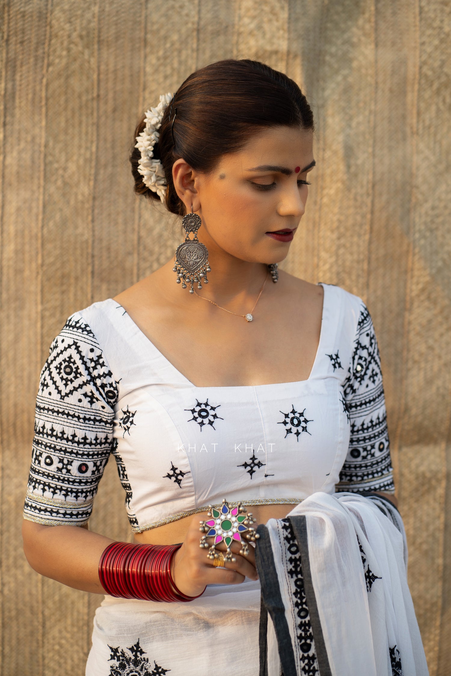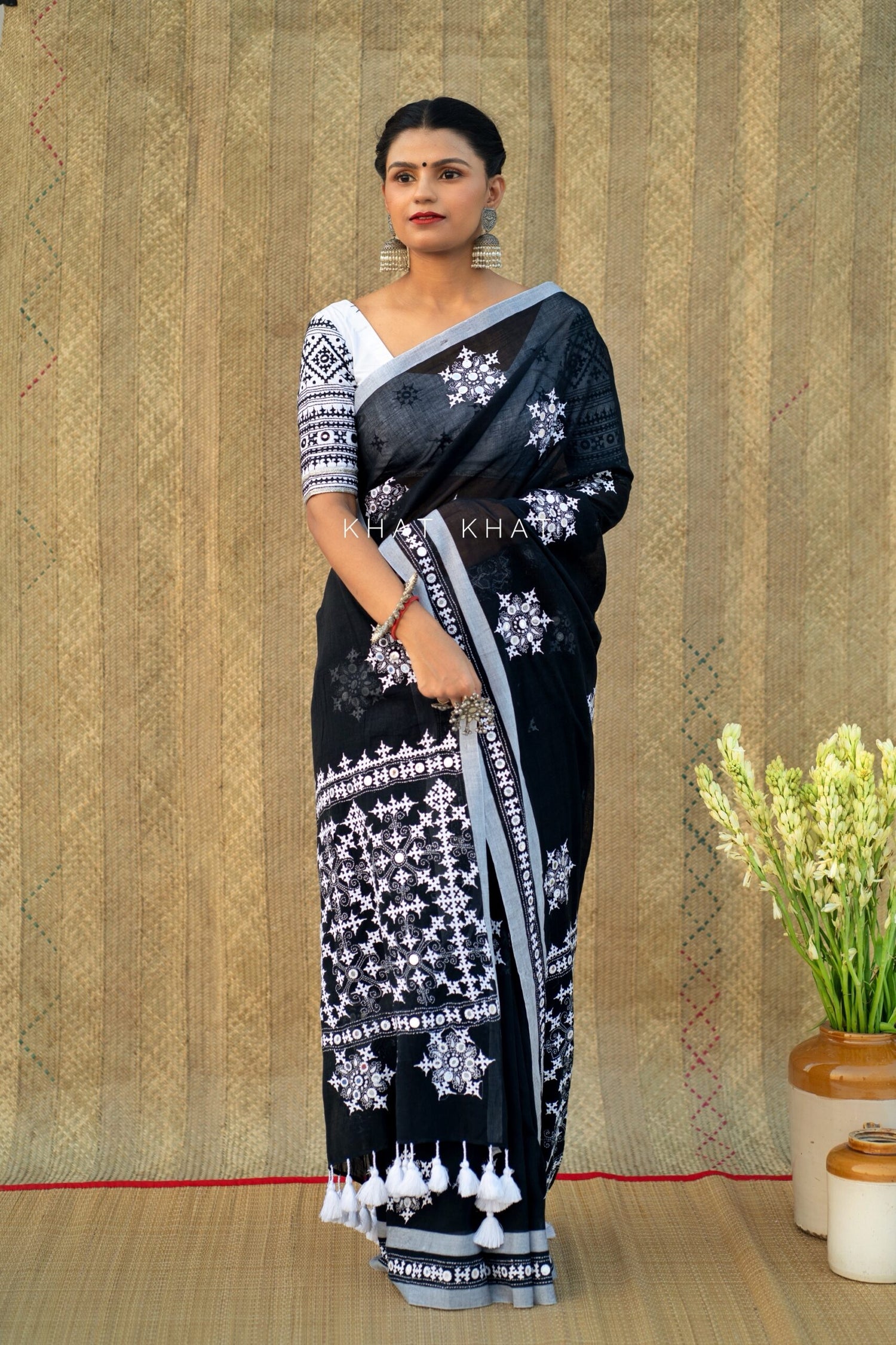 KHAT KHAT sarees are handcrafted using age-old weaving techniques passed down through generations. Each saree carries the essence of our artisans’ hard work and emotional connection to their craft, making every piece unique and full of character.
