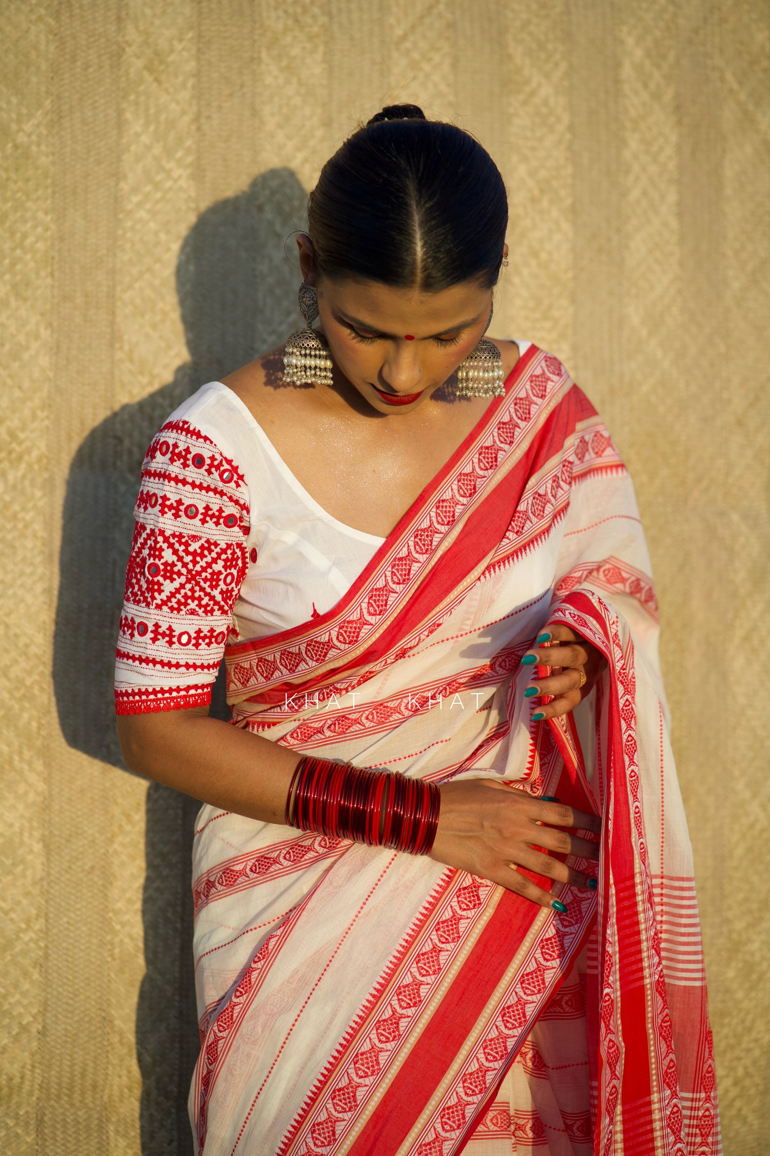 KHAT KHAT sarees are handcrafted using age-old weaving techniques passed down through generations. Each saree carries the essence of our artisans’ hard work and emotional connection to their craft, making every piece unique and full of character.
