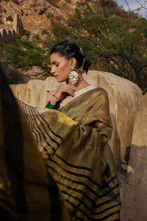 KHAT KHAT sarees are handcrafted using age-old weaving techniques passed down through generations. Each saree carries the essence of our artisans’ hard work and emotional connection to their craft, making every piece unique and full of character.