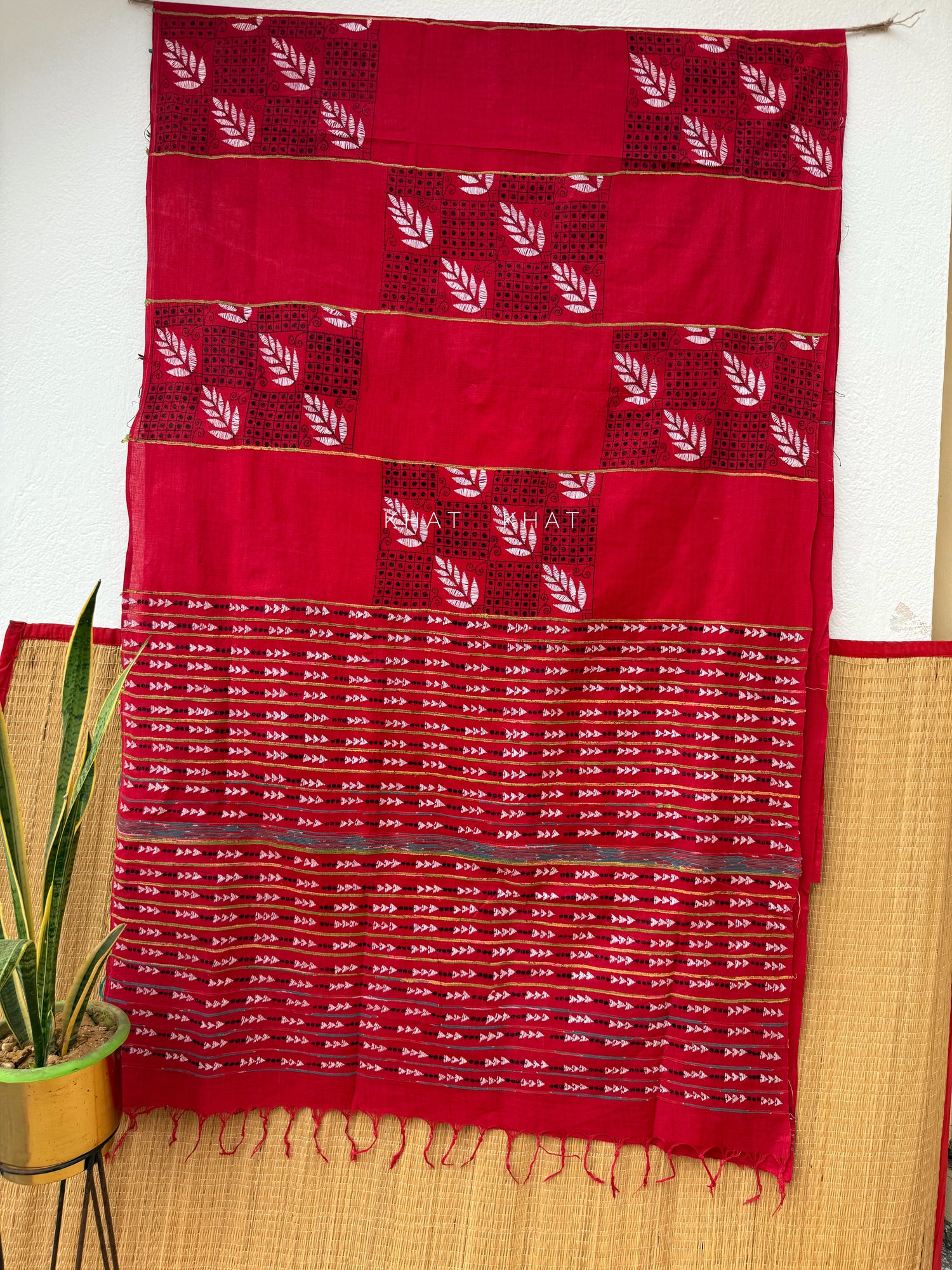 KHAT KHAT sarees are handcrafted using age-old weaving techniques passed down through generations. Each saree carries the essence of our artisans’ hard work and emotional connection to their craft, making every piece unique and full of character.