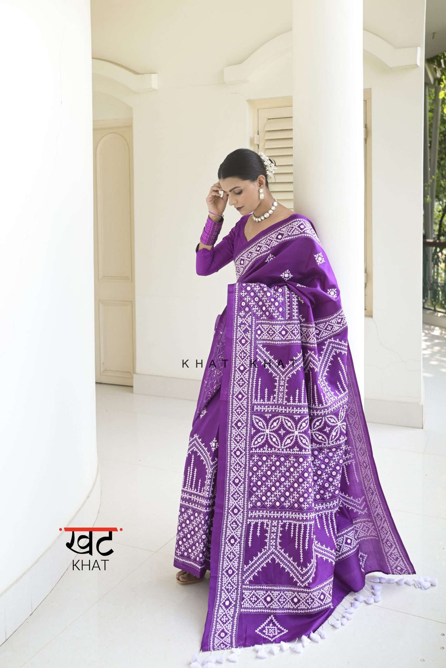KHAT KHAT sarees are handcrafted using age-old weaving techniques passed down through generations. Each saree carries the essence of our artisans’ hard work and emotional connection to their craft, making every piece unique and full of character.