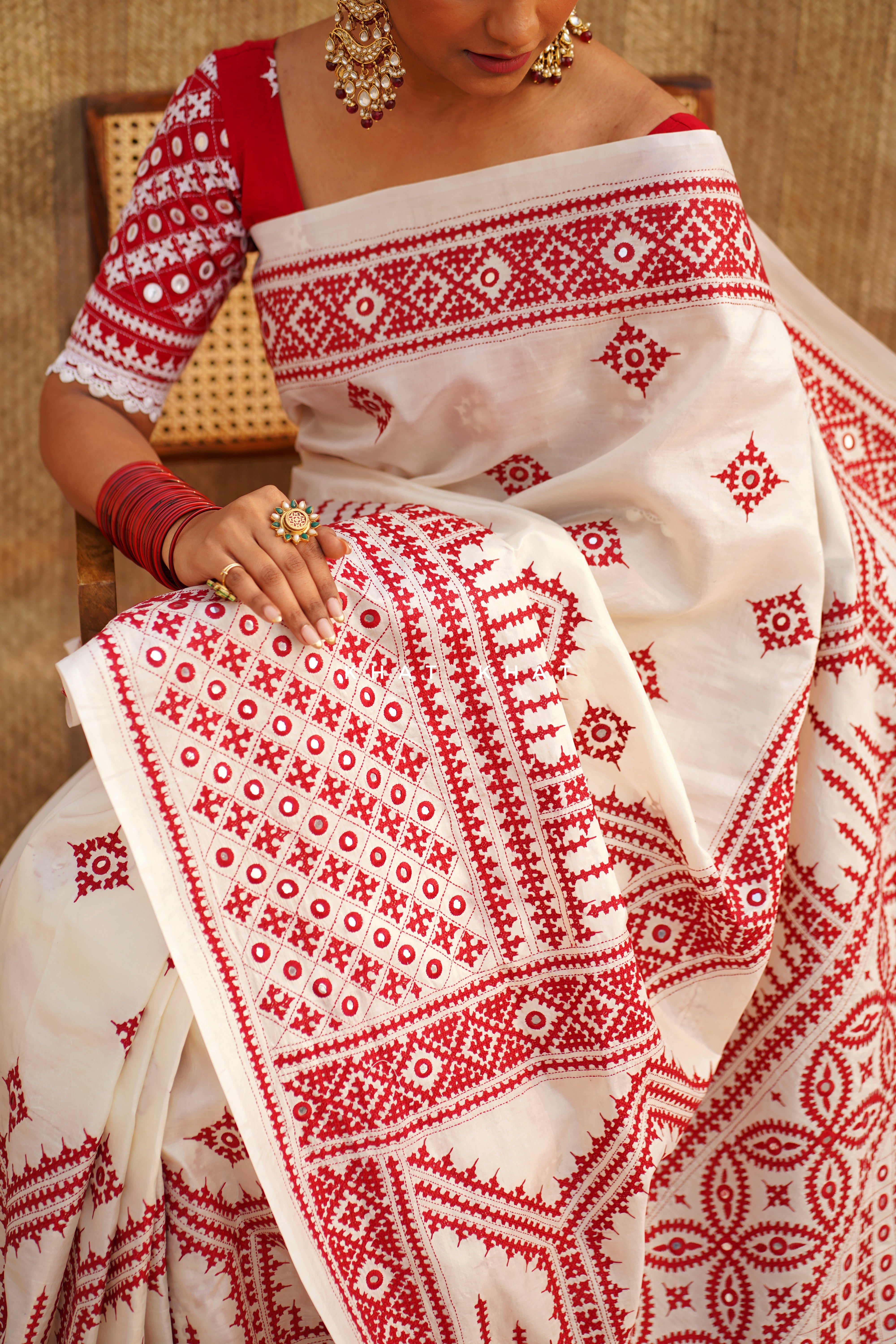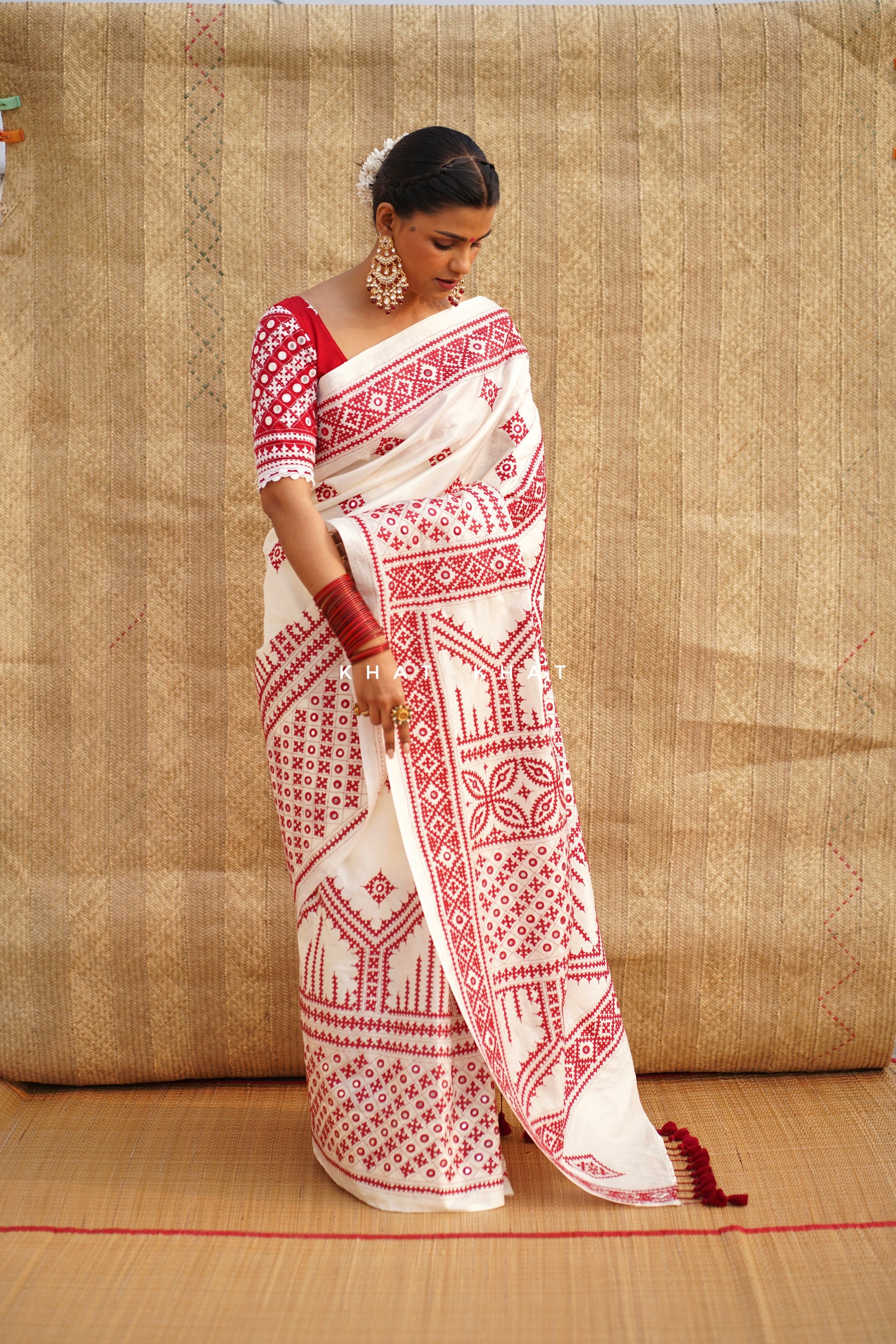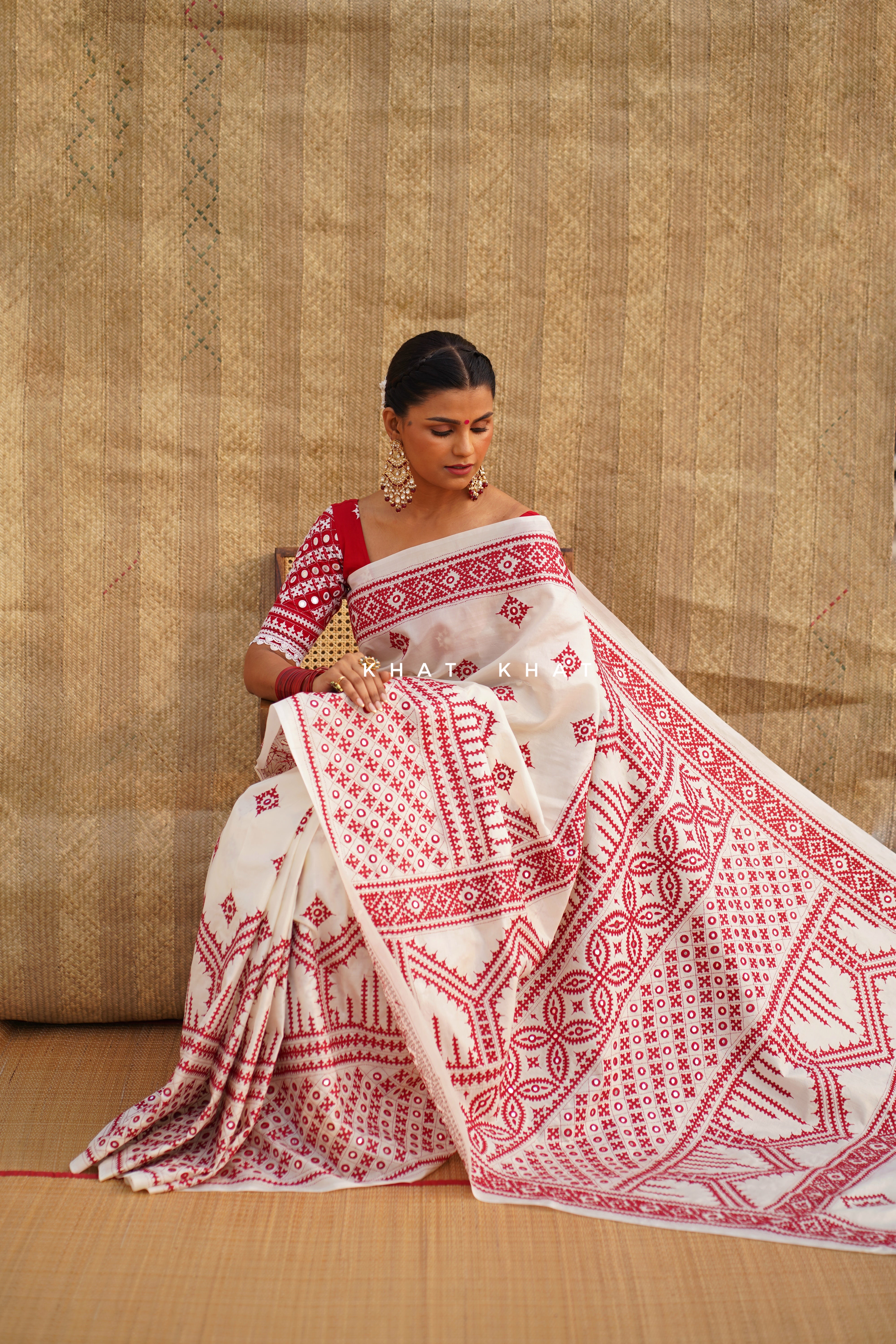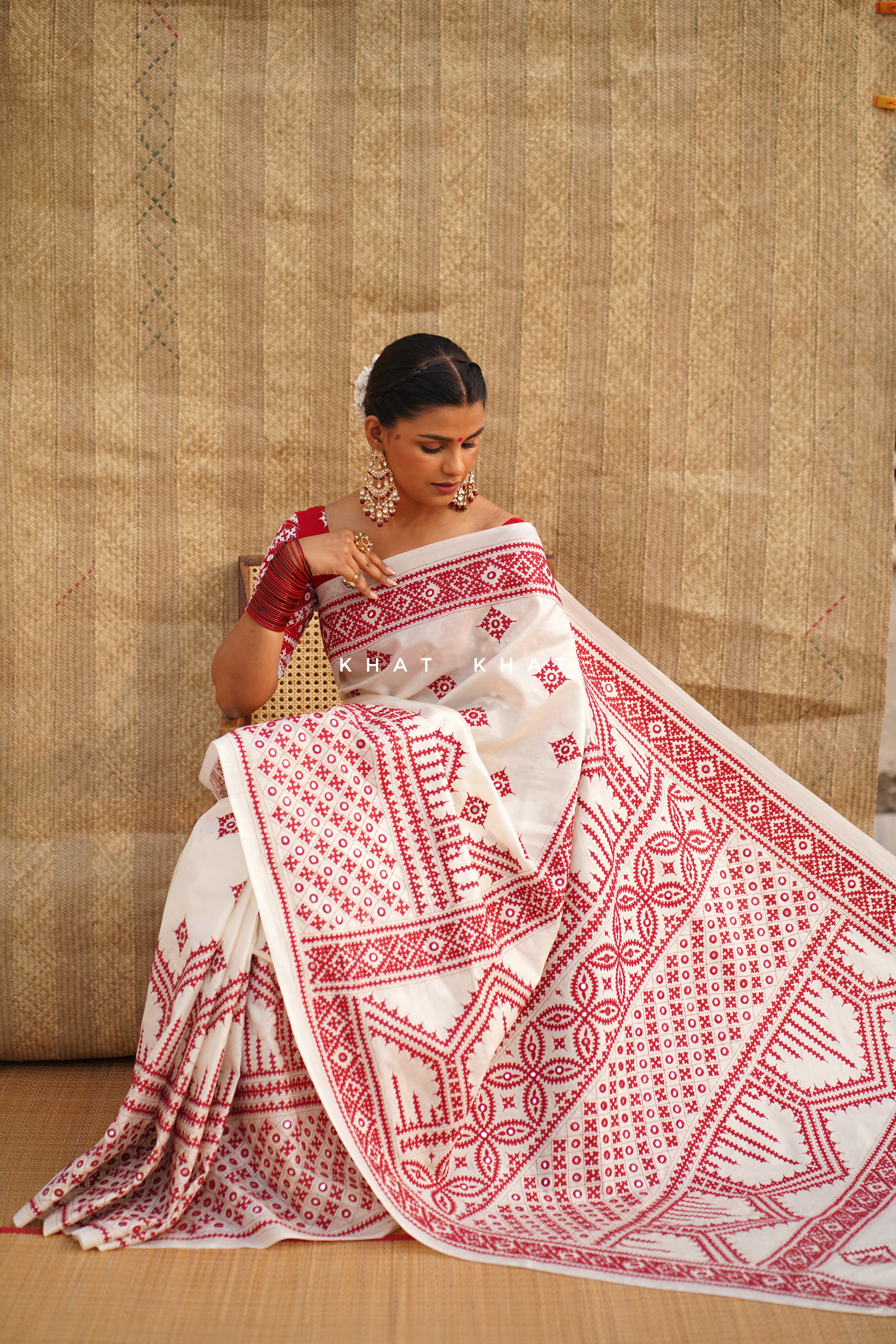 KHAT KHAT sarees are handcrafted using age-old weaving techniques passed down through generations. Each saree carries the essence of our artisans’ hard work and emotional connection to their craft, making every piece unique and full of character.