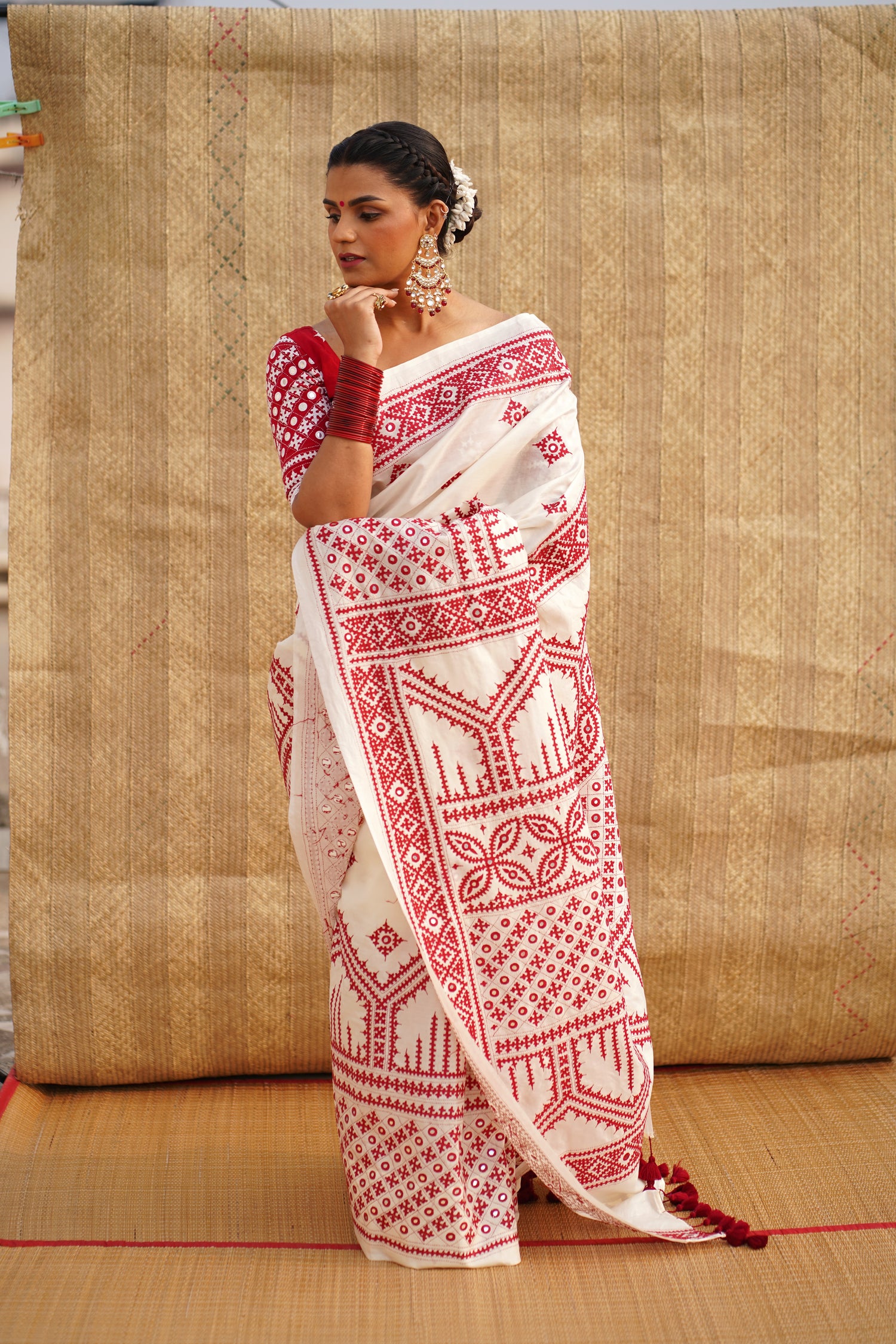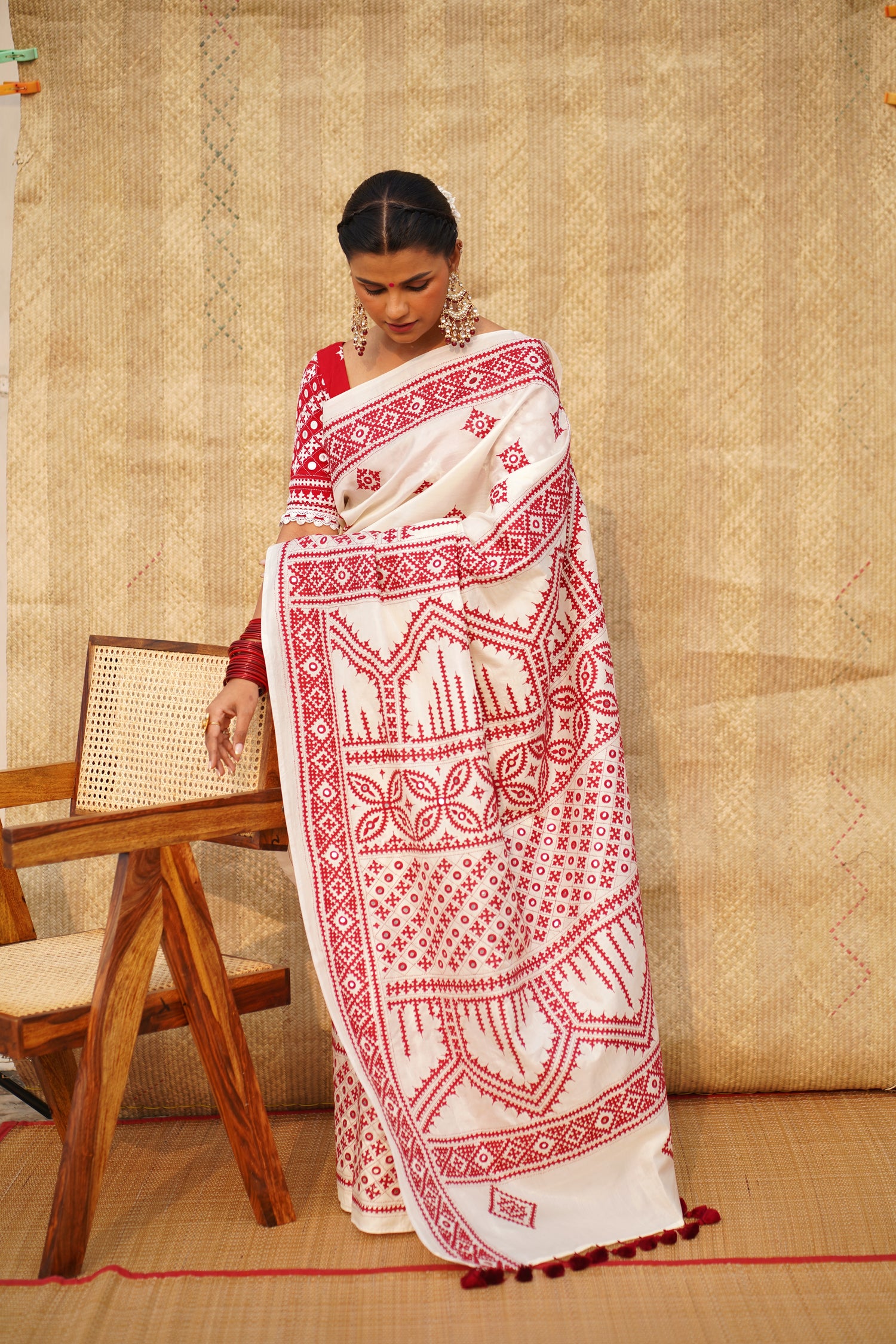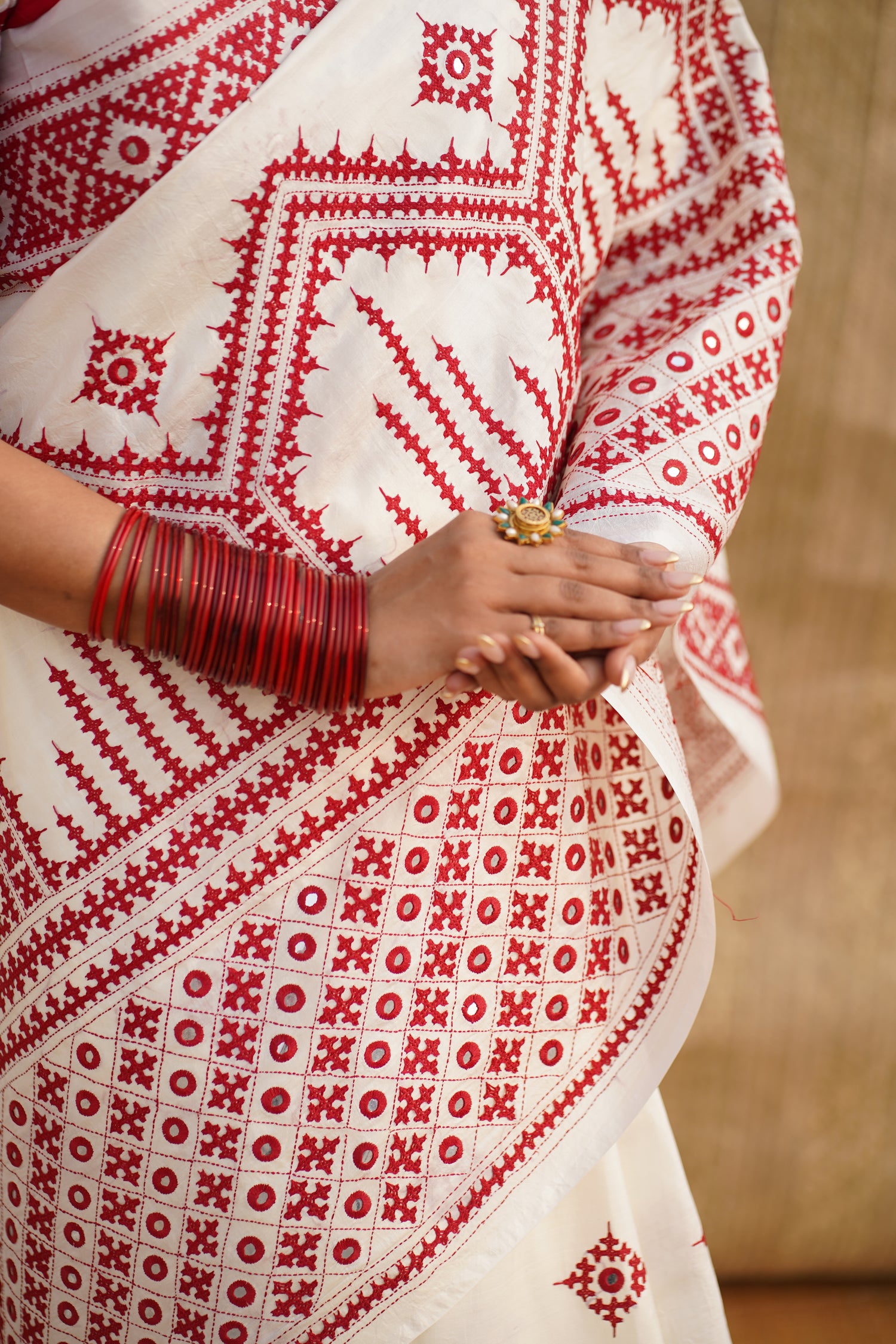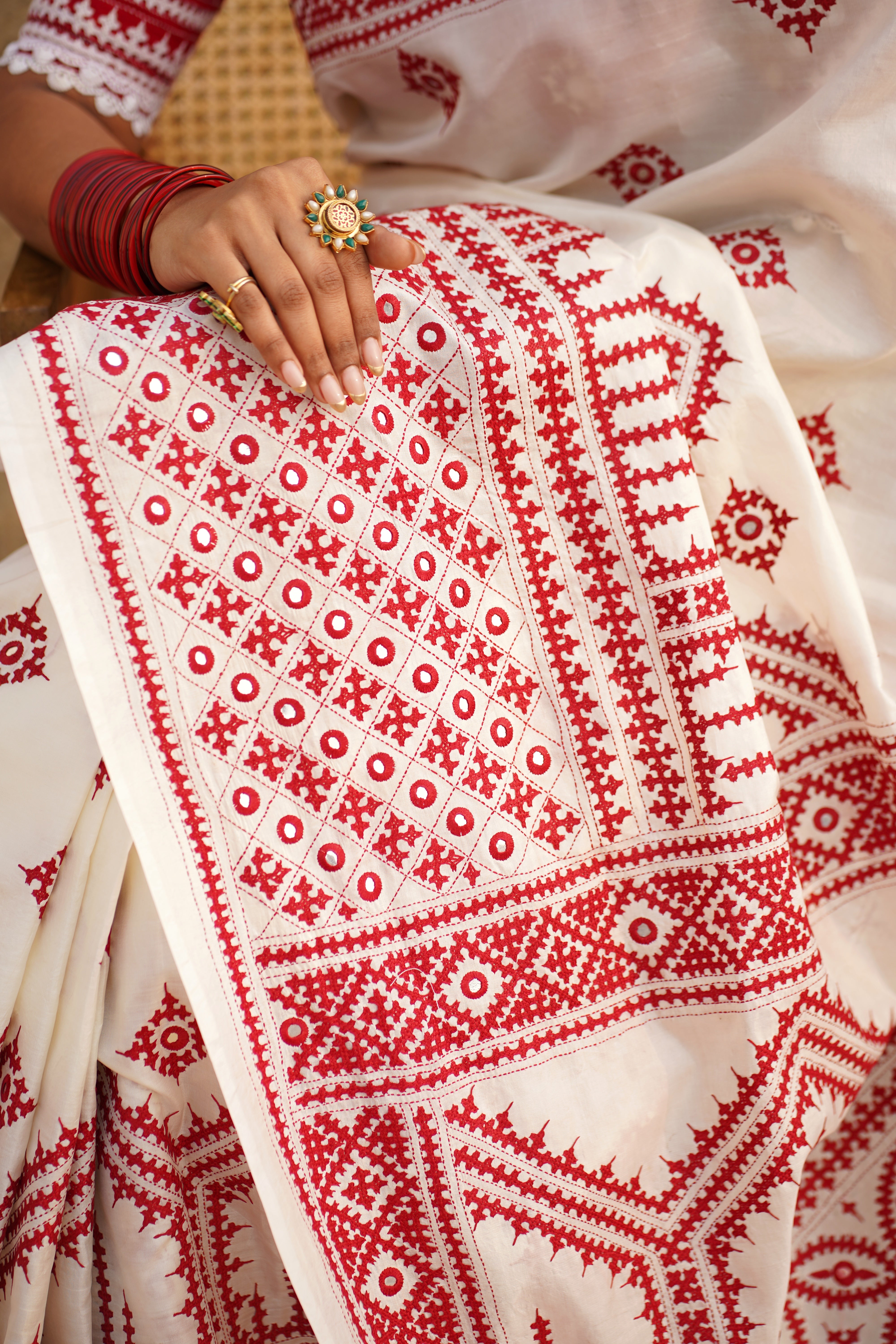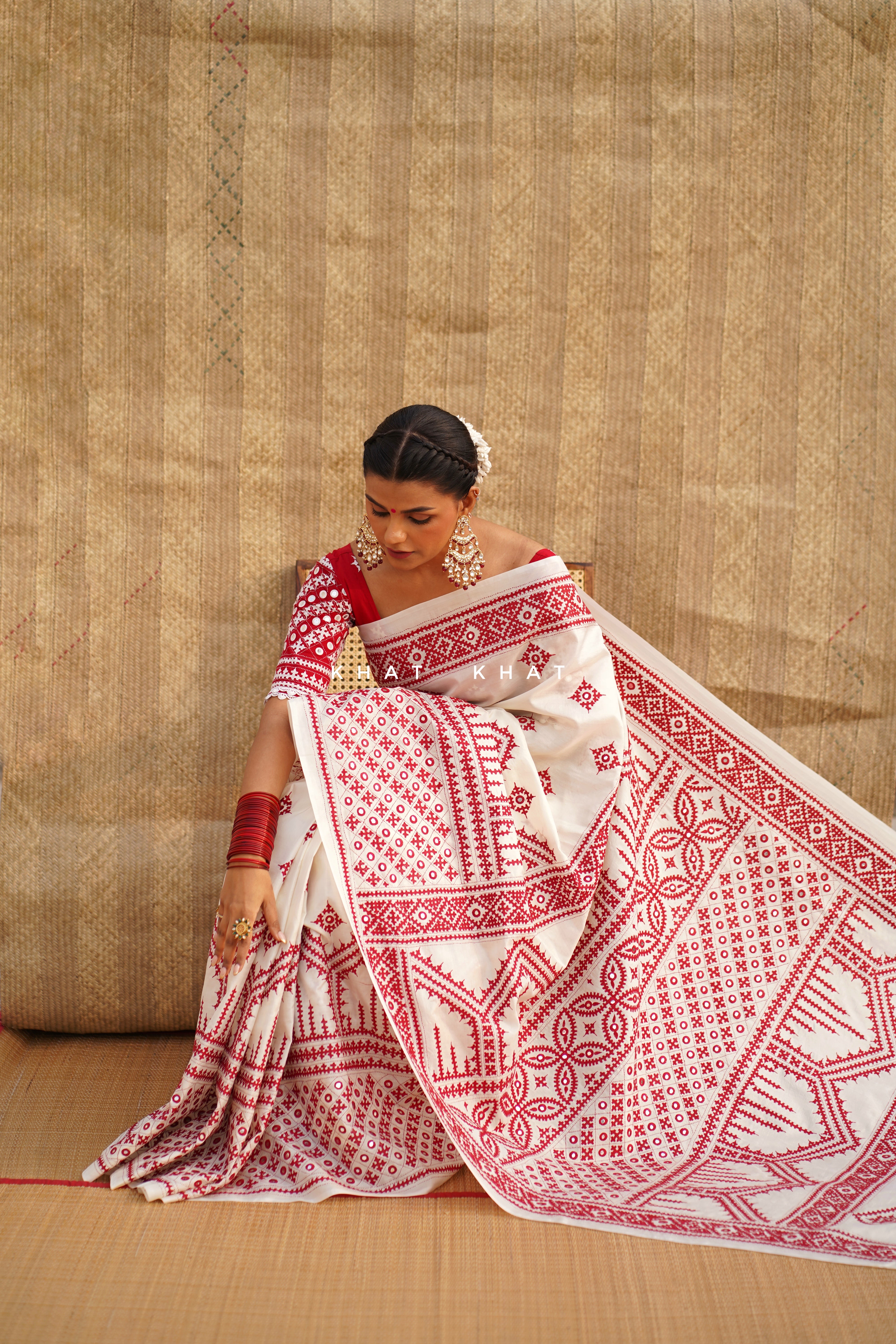 KHAT KHAT sarees are handcrafted using age-old weaving techniques passed down through generations. Each saree carries the essence of our artisans’ hard work and emotional connection to their craft, making every piece unique and full of character.