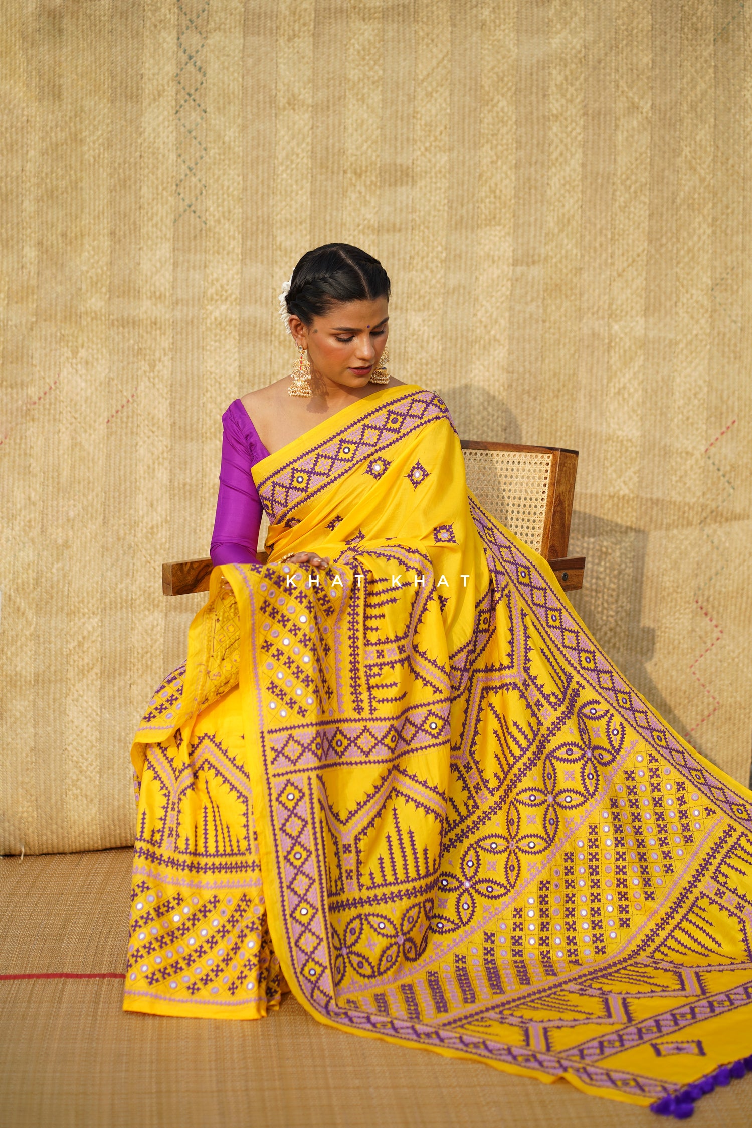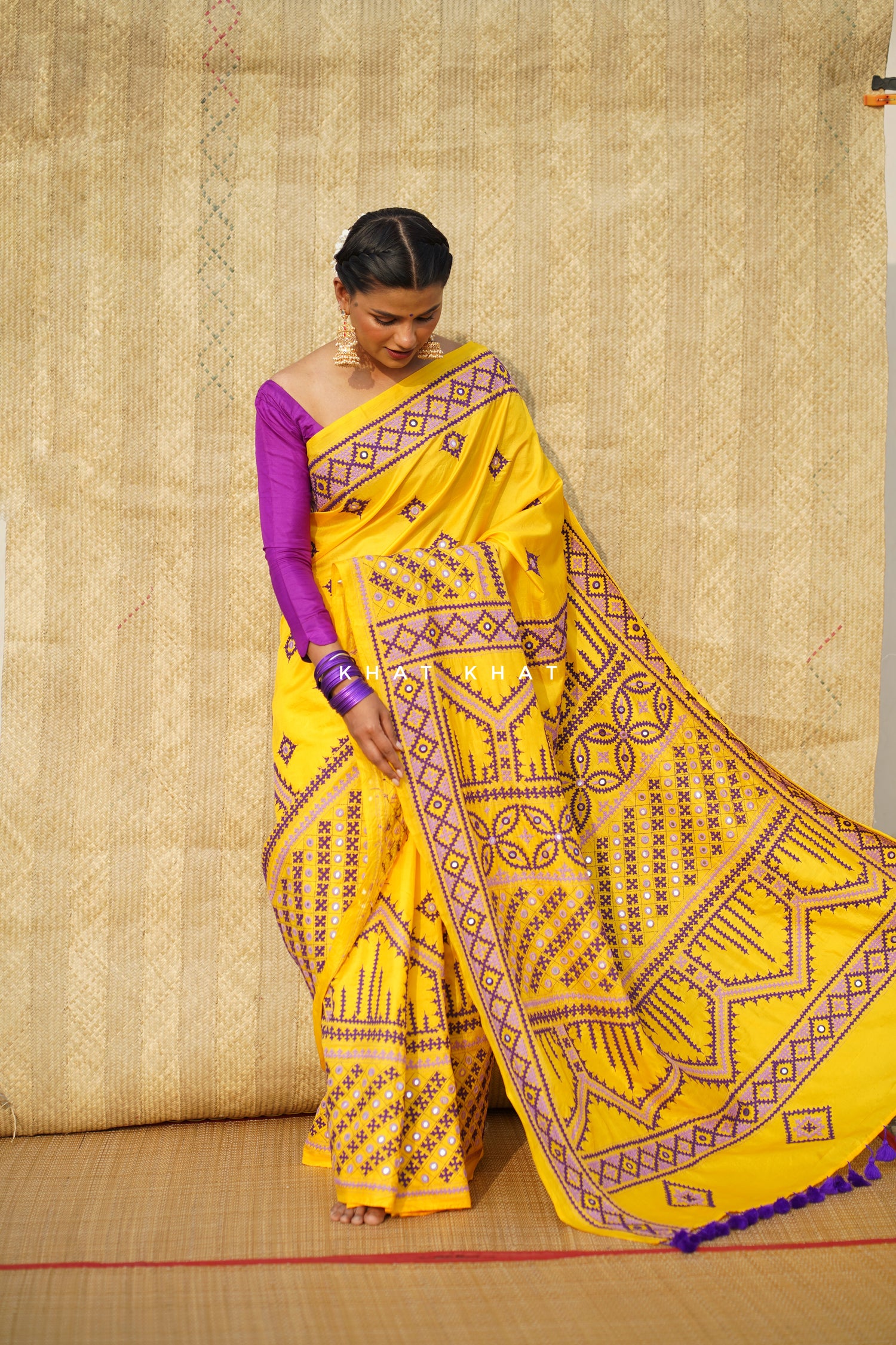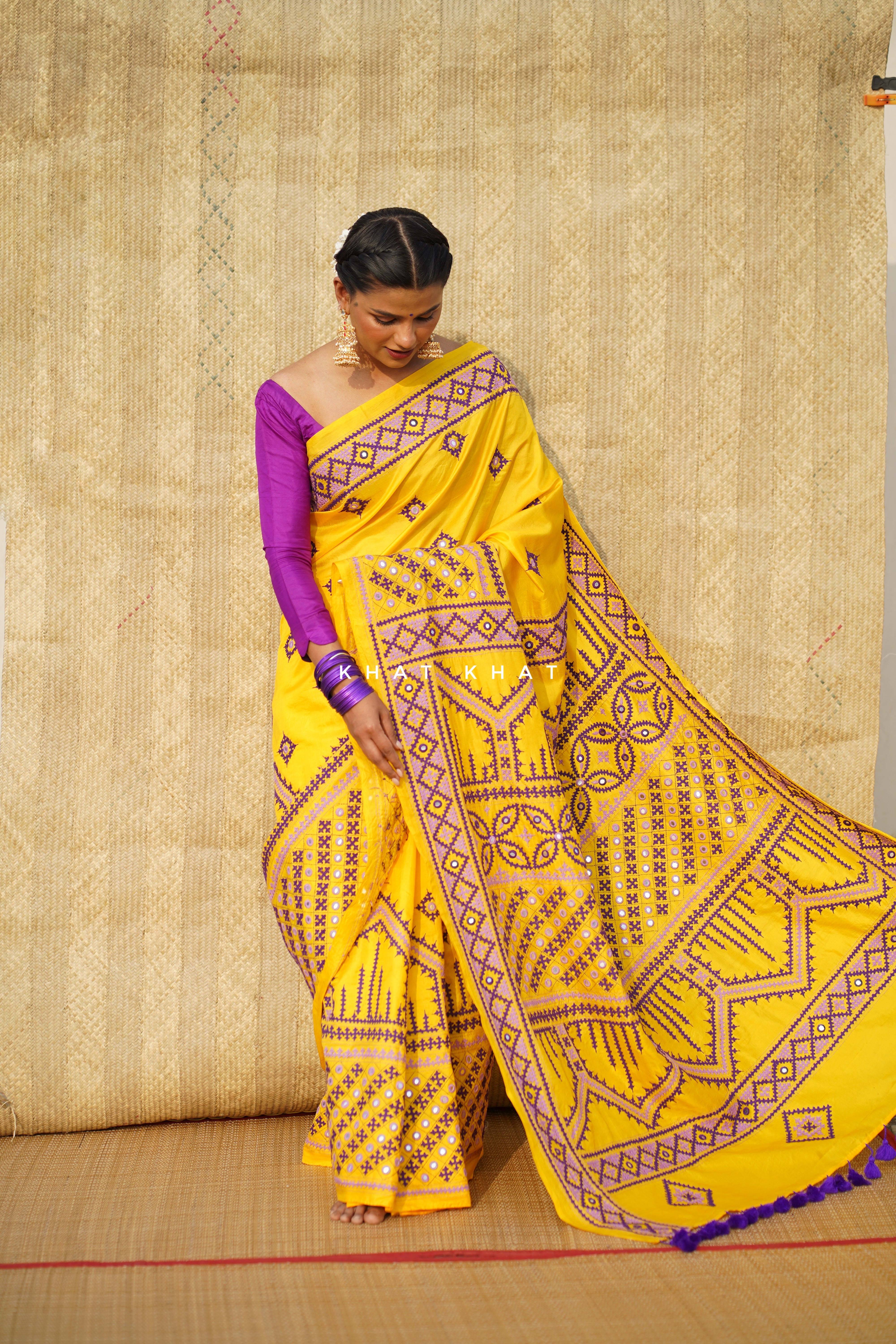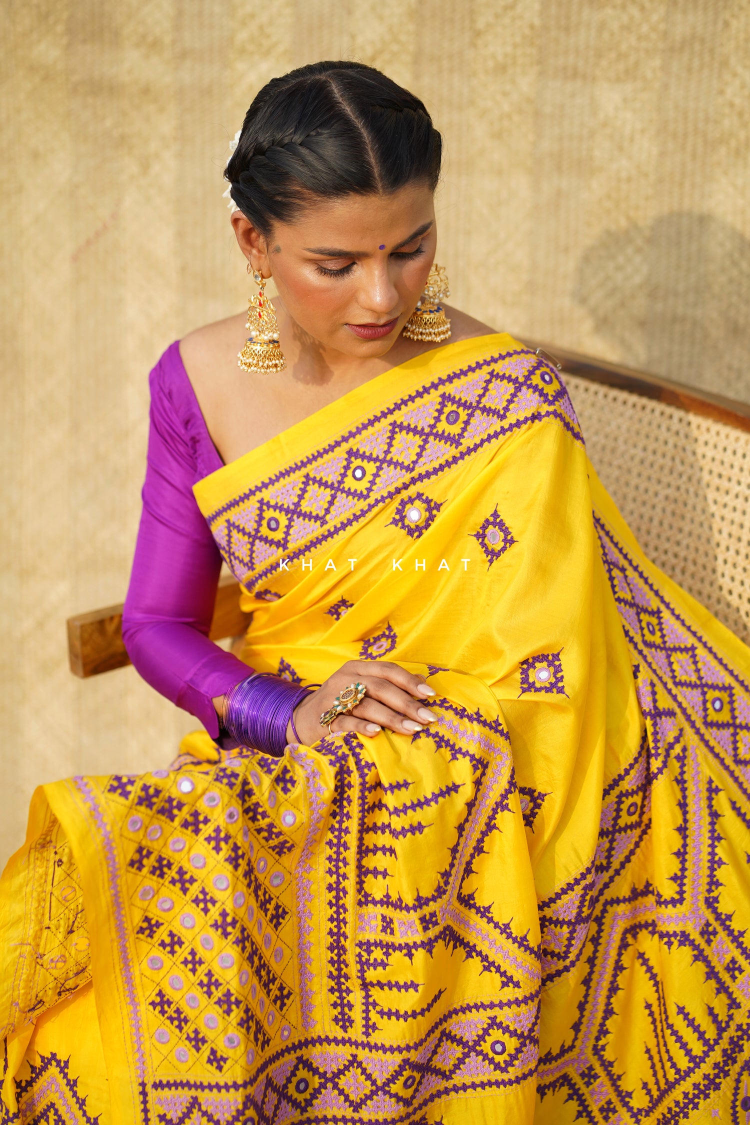 KHAT KHAT sarees are handcrafted using age-old weaving techniques passed down through generations. Each saree carries the essence of our artisans’ hard work and emotional connection to their craft, making every piece unique and full of character.