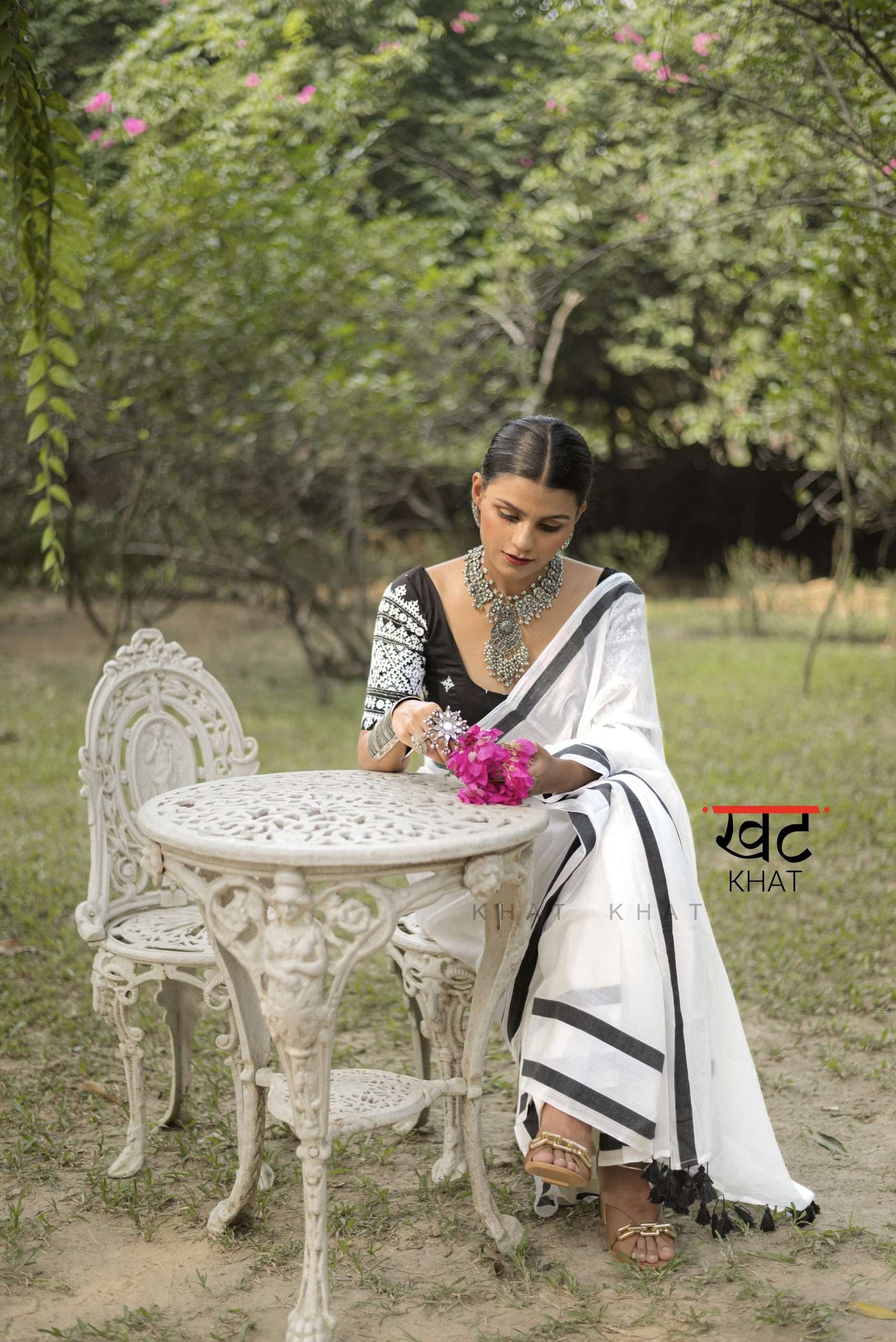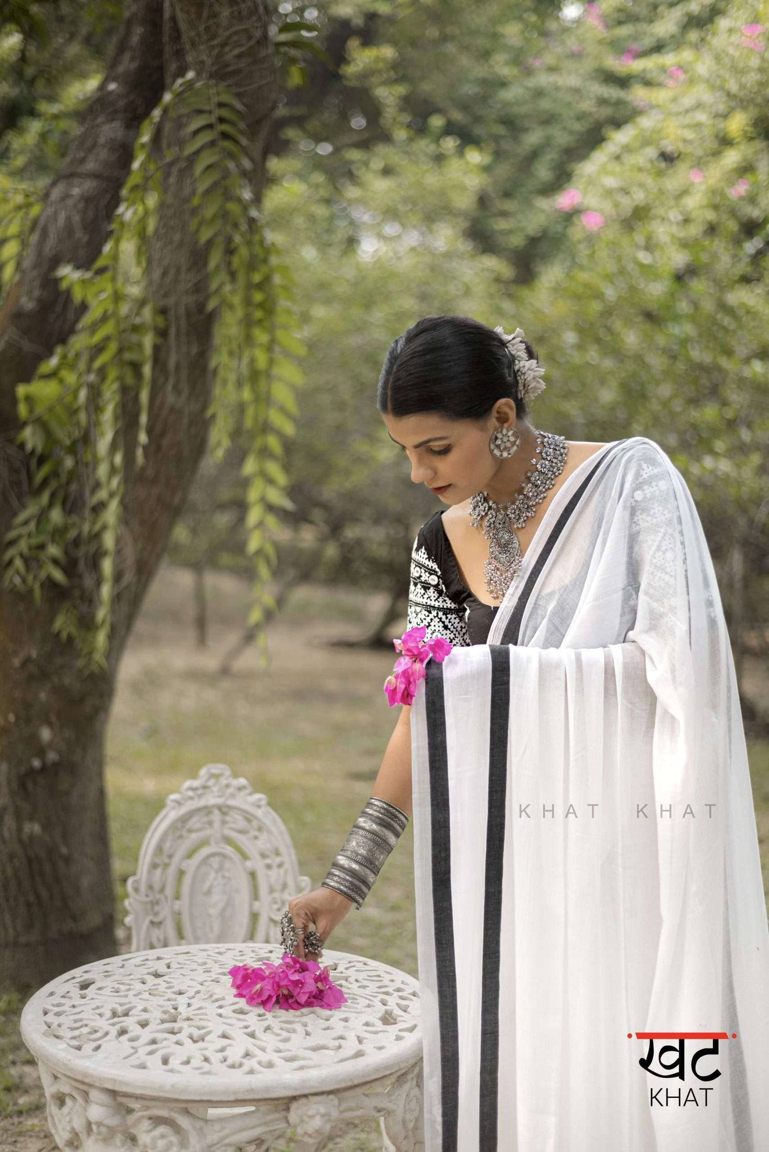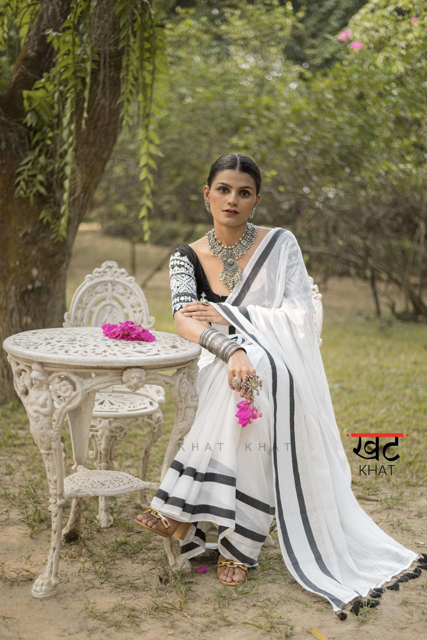 KHAT KHAT sarees are handcrafted using age-old weaving techniques passed down through generations. Each saree carries the essence of our artisans’ hard work and emotional connection to their craft, making every piece unique and full of character.